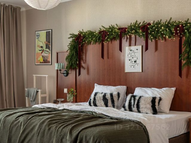 В комнате находится большая двуспальная кpoвaть 180*20, комод, кровать 120*200, журнальный столик, торшер, телевизор с кабельными каналами.