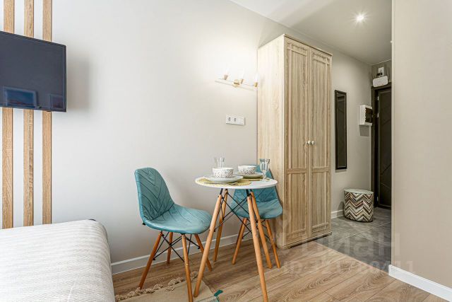 - Студия очень светлая: мансардные окна над кроватью с видом на Московское небо и архитектуру города