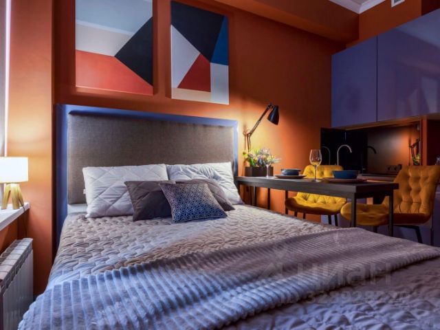 Апартаменты Vernadskogo площадью 40 кв.м. с гостиной, диваном-кроватью изолированной спальней, ванной комнатой и балконом расположены на 12 этаже жилого комплекса.