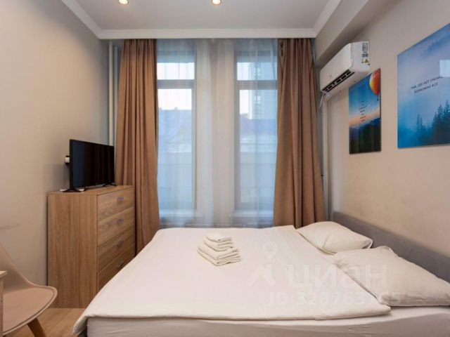 Апартаменты Vernadskogo площадью 40 кв.м. с гостиной, диваном-кроватью изолированной спальней, ванной комнатой и балконом расположены на 12 этаже жилого комплекса.