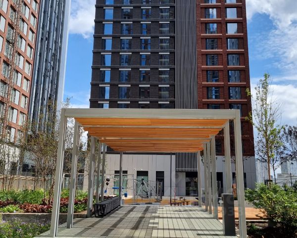 Жилой комплекс полностью огороженный, двор без машин, шикарная детская площадка и площадка для спорта. В доме множество магазинов (ВкусВилл, Магнит).