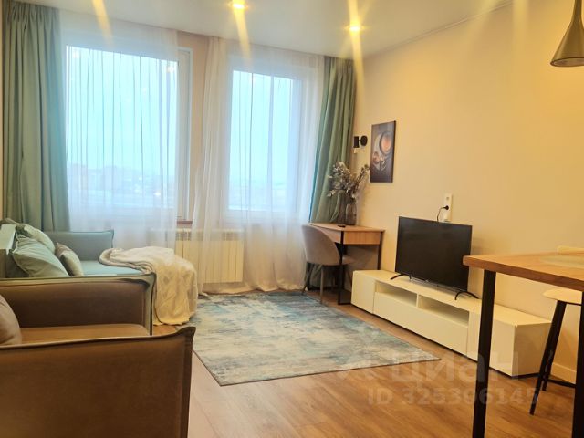 Впервые сдается квартира-студия от собственника. Квартира с ремонтом. Мебель в наличии - диван двух спальный с ортопедическим основанием, два стола - обеденный и письменный, кухонный гарнитур. Встроенные шкафы в прихожей, в комнате и на лоджии. На лоджии - декоративный стол и "теплые полы". Укомплектована бытовой техникой - холодильник, кондиционер, стиральная машина, микроволновая печь, телевизор, электрический чайник, индукционная плита. Многоуровневая подсветка. Эргономичный дизайн. Оперативный показ. Риелторам и посредникам просьба не беспокоить. Сдается только гражданам. ----- Примечание: у собственника могут быть дополнительные пожелания к жильцам - обсудите их в чате или по телефону