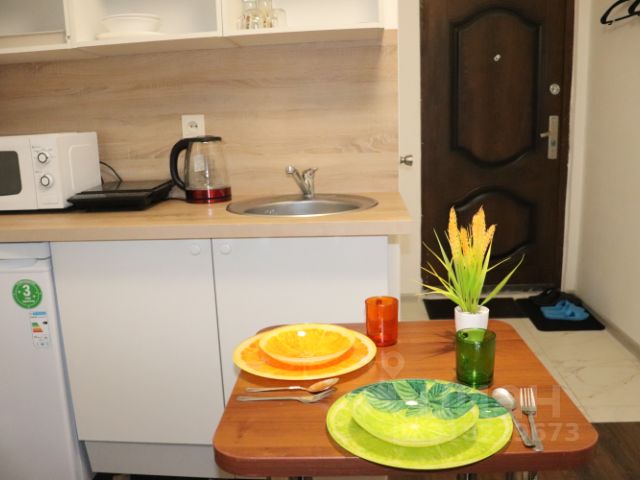 Квартира с новым ремонтом от собственника (Студия), полностью оборудована мебелью и техникой, продуманы детали для комфортной жизни. Зона прихожей оборудована большим платяным шкафом-купе для верхней одежды и обуви, с зоной хранения сезонных вещей (полки, ниши) Зона кухни оборудована мебелью, мойкой, холодильником, варочной панелью, СВЧ-печью, электрическим чайником, посудой на две персоны. Выделена обеденная зона в виде барной стойки со стульями и полочками для декора. В зоне отдыха расположен двуспальный диван-кровать, большой шкаф-купе для комфортного размещения одежды на вешалках и полках, выделена ТВ-зона с телевизором с функцией SMART TV. В СУ установлена сантехника, шкаф для хранения хоз.товаров, стиральная машина, полотенцесушитель. Квартира светлая, вид из окон во внутренний двор и улицу Поликахина. Зона окон закрывается тюлью и шторами. Подключен скоростной интернет до 100 Мб/с. Дверной звонок. Домофон. Транспортная доступность: До станции Железнодорожная (МЦД 4) - 7 минут на электросамокате; - 7 минут на машине, - 13 минут на маршрутном такси; - 15 минут пешком; В районе присутствует зона парковок Московского каршеринга и самокатов. В районе проживания присутствует инфраструктура: - Кофейни, кафе и рестораны; - Площадки для занятия спортом; - Большое разнообразие продуктовых магазинов, универмагов для дома; - Пункты выдачи OZON, WB, CDEK; - Фитнес-клубы; Место для досуга: - в пешей доступности (10 минут) расположился лесопарк Ольгино, эко-тропы, места для игры в футбол, катания на велосипеде, роликах - в 5 минутах ходьбы расположен ТЦ "Конфитюр"