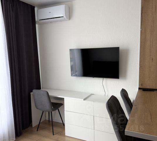 Уютная светлая студия со всеми удобствами. Дизайнерский качественный ремонт, использлвались только дорогие материалы, в студии ранее никто не жил, дом новый. Кухня оборудована посудомоечной машиной, холодильником, вытяжкой, встроенными СВЧ и духовкой. Есть кондиционер с поддержкой Wi-fi, телевизор самсунг 65 дюймов (на фото его еще не было). Большой, прекрасный рабочий стол. Совмещенный санузел, унитаз - инсталляция, есть гигиенический душ, стиральная машина, комфортабельная душевая кабина. В коридоре вместительный шкаф и зеркало в полный рост с подсветкой. Высокоскоростной wi-fi. Студия сдается на длительный срок (11 мес. с возможностью пролонгировать). Залог равен одному ежемесячному платежу + обеспечительный платеж за последний месяц проживания выплачивается сразу. Студия расчитана на проживание одного платежеспособного человека или семейной пары, оформление по договору. ----- Примечание: у собственника могут быть дополнительные пожелания к жильцам - обсудите их в чате или по телефону