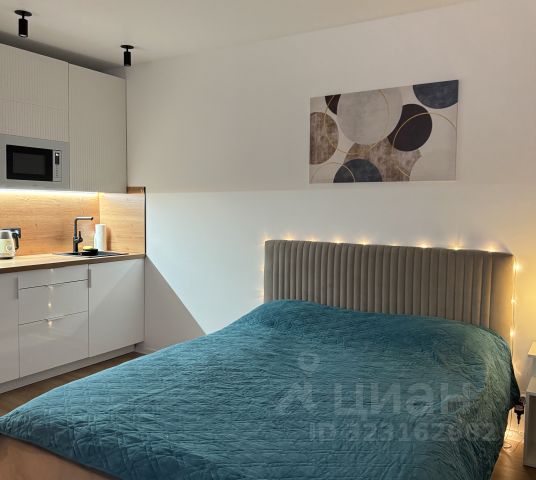 Сдается уютная светлая студия 21,6 м2, долгосрочная аренда (договор на 11 месяцев). Квартира сдается впервые! Квартира полностью меблирована и готова к заселению. Зона кухни оборудована новой бытовой техникой холодильник, индукционная варочная панель, духовка, посудомойка, СВЧ, чайник, вытяжка. Есть все необходимое для комфортного проживания: посуда, постельное белье, пылесос, утюг, гладильная доска, столовые приборы и пр. В квартире также установлены кондиционер, телевизор и стиральная машина с функцией сушки, организовано рабочее место, проведен интернет, предусмотрено много мест хранения. Новый ЖК в пешей доступности от метро в локации с развитой инфраструктурой: магазины, аптеки, кафе, сервисы на первых этажах комплекса. Коммунальные платежи: электроэнергия, ХВС/ГВС и услуги интернет-провайдера оплачивает арендатор. Заселение только при наличие постоянной регистрации в РФ, без домашних животных.
