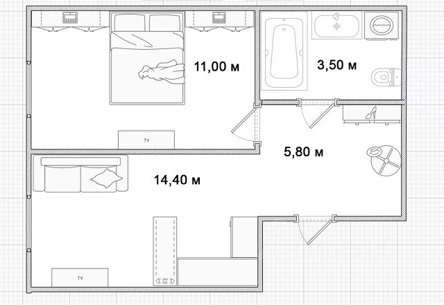 Квартира с дизайнерским ремонтом, полностью готова к комфортному проживанию. В комнате и на кухне имеется вся необходимая мебель. Из техники в вашем распоряжении холодильник, микроволновка, плита, вытяжка, посуда, стиральная машина, телевизор, утюг, гладильная доска, сушилка для белья . Санузел совмещенный, с душевой кабиной.