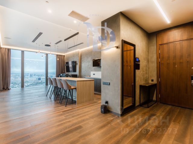 СТУДИЯ Видовые апартаменты в комплексе бизнес-класса Федерация. Апартаменты общей площадью 77,9 кв, расположены в башне Восток на 72-м этаже. Выполнена премиальная отделка в стиле Space с использованием дорогостоящих материалов. Установлена система вентиляции и очистки воздуха. Просторная студия включает зону кухню-гостиной и спальни, ванную комнату, постирочную, гардеробную и холл. Апартамент укомплектован мебелью и бытовой техникой. Из окон открываются виды на город в сторону Парка Победы.