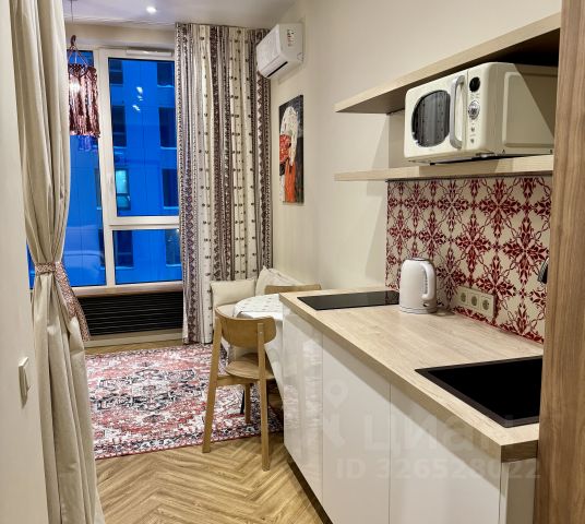 Сдаётся светлая и очень уютная квартира- студия. Квартира расположена на 16 этаже, окно выходит на дворовую территорию, что обеспечивает тишину и перспективные виды из окна. В квартире сделан современный ремонт. Есть вся необходимая техника: холодильник, посудомоечная машина, микроволновая печь и духовой шкаф, стиральная и сушильная машины. Квартира меблирована: в комнате имеется раскладывающийся диван-кровать с ящиком для хранения и вместительный шкаф, на кухне - кухонный гарнитур, варочная панель, вытяжка, встроенные духовой шкаф и микроволновая печь, встроенный холодильник, посудомоечная машина, обеденный стол и стулья. Кухня укомплектована фильтром для воды, чайником, посудой, столовыми и кухонными приборами. В совмещенном санузле расположены стиральная и сушильная машины, ванная, тумба под раковиной. Также есть панорамное окно, из которого можно наслаждаться прекрасными закатами. Дом 2023 года постройки. Секция оборудована 2-мя пассажирскими лифтами и 1-м грузовым. На первом этаже также расположена колясочная. В доме имеется двухуровневая подземная парковка, есть и наземная за шлагбаумом. При необходимости возможно арендовать парковочное место или кладовую. На первом этаже здания расположены магазины, кафе, маникюрный и тату салоны. Рядом с домом расположены торговые центры, фитнес клубы, спортивный комплекс, языковые школы, что делает это место удобным для жизни. Отличная транспортная доступность: рядом метро, МЦК, диаметр D4 и остановки общественного транспорта, что позволяет быстро добраться до любой точки города.
