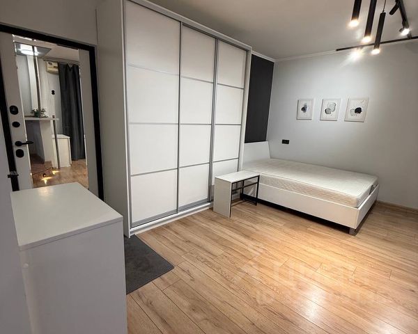 Сдается стильная студия с дизайнерским ремонтом на длительный срок. Квартира расположена на 4 этаже панельного дома. В доме есть консьерж и два пассажирских лифта, а также грузовой лифт. Для удобства жильцов предусмотрена открытая парковка. В квартире имеется балкон. Из мебели — удобный раскладной диван и телевизор с смарт ТВ. Совмещенный санузел выполнен в современном стиле. Дом находится в районе с развитой инфраструктурой, что обеспечивает комфортное проживание.