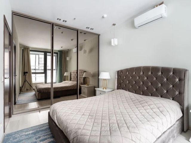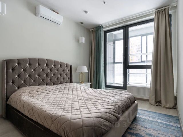 Уникальная дизайнерская студия, с отделенной оборудованной кухней. Особенность квартиры - окна в пол, интересное решение со стеной из стеклоблоков (тренд этого года).