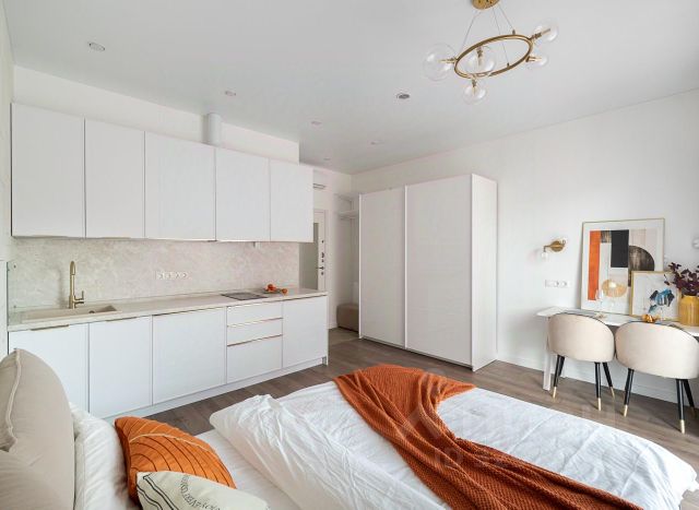 Сдается стильная студия с дизайнерским ремонтом (21 кВ м) на 18 этаже монолитного дома 2024 года постройки. В квартире предусмотрено два спальных места, что делает ее удобной для проживания семьи или пары. Внутри вас ждет современная кухня с качественной мебелью и техникой, включая холодильник и микроволновую печь. Просторная зона отдыха оборудована удобным диваном и письменным столом, а также большим зеркалом в прихожей. Санузел совмещенный, оформлен в светлых тонах с мраморной плиткой, оснащён душевой кабиной и современной сантехникой. В квартире установлен кондиционер для комфортного климата в любое время года. Дом оснащен двумя пассажирскими лифтами и подземной парковкой. Курение запрещено, но можно проживать с детьми и питомцами. Залог можно разбить на 2 части Студенты не рассматриваются. City Bay - современный квартал бизнес-класса на берегу Спасского затона. Расположен в зеленом северо-западном районе Москвы - Покровское-Стрешнево. ЖК построен по индивидуальному проекту ведущим застройщиком страны. Главная концепция квартала - настоящий город в городе с отлично развитой инфраструктурой и собственной благоустроенной набережной. Дом сдан в 2024 году. В лобби предусмотрена колясочная зона, санузел и лапомойка для животных. Закрытый двор без машин, охрана и видеонаблюдение. Подземный паркинг. Благоустроенный дворы с ландшафтным дизайном, игровыми и спортивными площадками и др.Все необходимые объекты социальной инфраструктуры находятся в непосредственной близости: продуктовые магазины, пункты ПВЗ, кафе, рестораны, салоны красоты, медицинские учреждения.