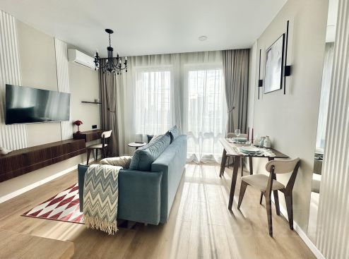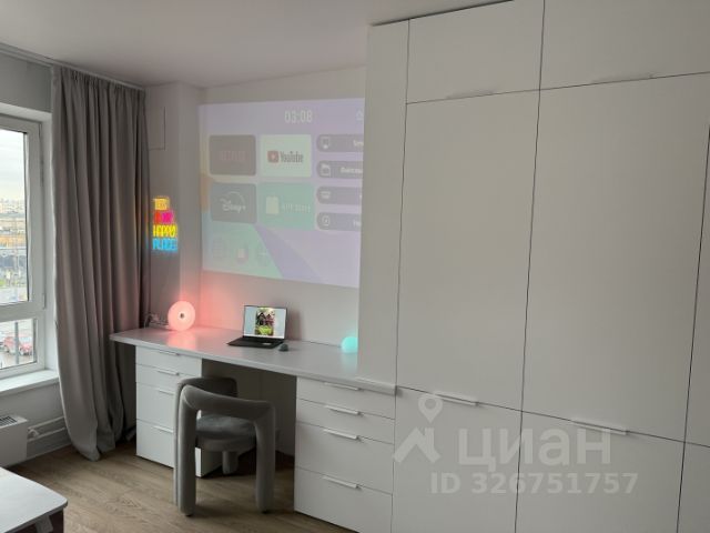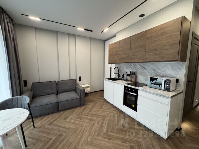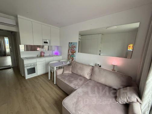 Просторная кухня-гостиная, спальная зона с двуспальной кроватью (подъёмный механизм, отсек для хранения, новый ортопедический матрас). Вместительный шкаф в прихожей, система хранения в комнате. Совмещённый санузел с душевой. Кухня укомплектована всей необходимой техникой (посудомойка, варочная поверхность, вытяжка, встроенный духовой шкаф, встроенная микроволновка, холодильник, кофемашина, электрический чайник). Установлена система защиты от протечек, проточный водонагреватель, кондиционер, фильтр обратного осмоса для очистки воды Geyser, теплые полы в санузле, коридоре и кухне.
