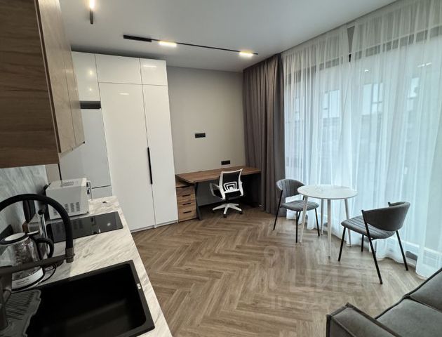 Уютная студия площадью 24 м² в комплексе HighWay на 19-м этаже. Абсолютно новая мебель и техника, в апартаментах никто не жил. Сдается собственником впервые.