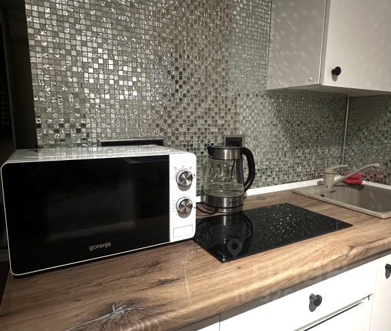 Условия: Квартира полностью укомплектована мебелью и техникой (встроенный холодильник, измельчитель, стиральная машина, индукционная плита, вытяжка, большая посудомоечная машина, встроенная духовка и микроволновка, ТВ на кухне, проектор в комнате, система Сооking). В ванне установлен теплый пол, электрический полотенцесушитель и зеркало с подсветкой. В квартире имеется лоджия.