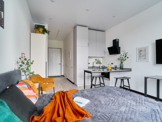 Гостиная-кухня, с раскладным диваном и ШКАФОМ.