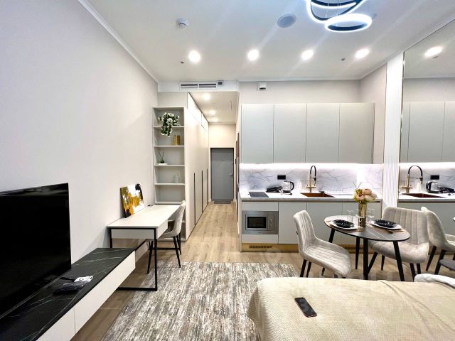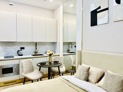 Лот 127732. Полина Брегель. Светлая квартира студия в новом современном доме. Общая площадь - 33 кв.м. Потолки 3 м. Квартира располагается на 4/17 этаже. В лобби ресепшен. Подземный паркинг, машиноместо оплачивается отдельно. Современный ремонт с использованием высококачественных материалов и премиальной техники Miele. Квартира полностью обставлена мебелью и всей необходимой бытовой техникой, в наличии: посудомоечная машина, холодильник, приточно-вытяжная система вентиляции и кондиционирования, бойлер, душевая кабина, стиральная машина, подогрев полов, телевизор, высокоскоростной интернет. Окна выходят в тихий внутренний двор. Возможна аренда с домашними животными. Срок аренды - от одного года. Без комиссии для арендатора. Бонус партнерам 24750 рублей. Есть презентации в pdf на русском или английском для партнеров.