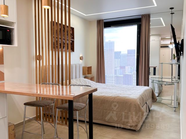 Студия премиум-класса в аренду без комиссии! Важно: • Квартира сдаётся на срок от 11 месяцев • С питомцами — по согласованию • Стоимость указана за месяц проживания • Без скрытых комиссий и переплат • Без предоплаты за последний месяц • Без риэлторского вознаграждения O кваpтирe Сдаётся стильная студия премиум-класса с дизайнерским ремонтом и панорамным видом на город. Квартира полностью готова к заселению — всё новое, продумано до мелочей для комфортной жизни. Сдаётся впервые. Укомплектована всем необходимым: — Кухня: современный кухонный гарнитур, барная стойка со стульями — Техника: варочная панель на 2 конфорки, духовой шкаф, вытяжка, холодильник, чайник, тостер, микроволновка — Зона отдыха: двуспальная кровать, телевизор, журнальный столик, полочки для хранения — Ванная: душевая кабина, стиральная машина, зеркало — Прихожая: зеркало-шкаф и вместительные системы хранения — Интернет подключён — можно сразу заезжать и работать из дома О доме и районе — 29 этаж из 31 — панорамный вид и тишина над городом — В шаговой доступности — магазины, аптеки, кафе, фитнес-центры и остановки транспорта — До метро Верхние Лихоборы — около 5 минут — Рядом зелёные зоны и места для прогулок — У дома предусмотрены парковочные места Квартира идеально подойдёт для одного человека или пары Записывайтесь на просмотр! Эта квартира сдаётся при помощи сервиса Rеntifly — надёжно, удобно, без лишних хлопот: Не платите за последний месяц аренды Поддержка от сервисной службы на весь срок проживания Все спорные вопросы решает сервис Квартира застрахована