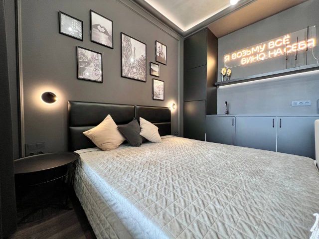 Интересная дизайнерская квартира! Панорамное остекление. Всё современное. Обустроенный балкон, рабочее место. Просторная ванная. За домом набережная. В доме и вокруг много кафе, магазинов и другая инфраструктура. Для 1-2 чел, без животных.