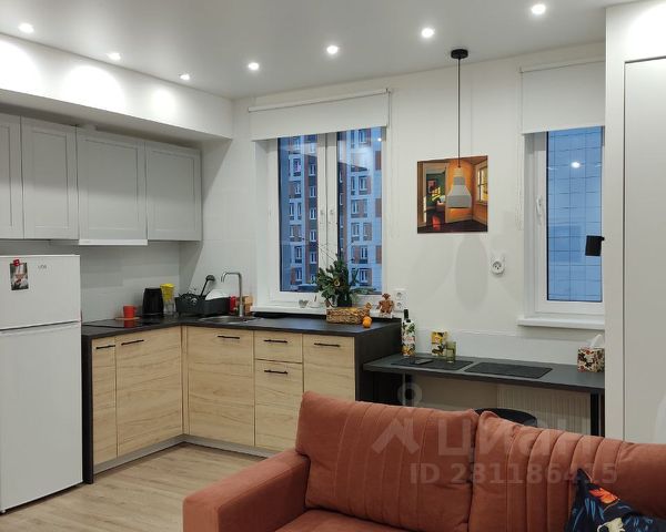 Номер лота - 3479285 ЖК" Малина" Отличная студия. Кухонный гарнитур встроенный, вся бытовая техника. Современная мебель. Кондиционер.Развитая инфраструктура. ИНКОМ-Октябрьское поле.