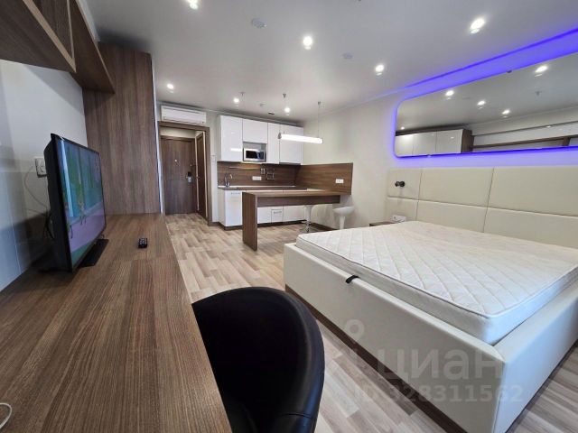 Просторная светлая функциональная дизайнерская студия в ЖК "Сити Бэй". В этой квартире у Вас точно не возникнет ощущения маленького гостиничного номера, перекрытого наполовину кроватью, куда зашли чтобы переночевать. Квартира новая, вы первыми снимете ее. Ремонт только окончен. У всех соседей по кругу (сверху, снизу, слева, справа) также ремонт окончен. Мешать никто не будет. Места много! И это с учетом king-size кровати "2х2 метра" с матрасом от Асконы, удобного длинного дивана, большой кухни, полноразмерной лежачей ванны, рабочего места / письменного стола, функционального шкафа-купе в формате гардеробной и обеденной зоны. Есть все: кондиционер, бризер, Smart-TV, стиральная машина, посудомоечная машина, 50-литровый бойлер (горячая вода будет всегда), теплые полы, полноразмерный встроенный холодильник с морозильной камерой, варочная панель и духовой шкаф, встроенная СВЧ-печь, офисное кресло, емкое пространство для хранения. Из окна комбинированный вид во двор и на реку. Площадь основной зоны квартиры (без учета кухни и ванной) ~20 кв. м. Она визуально увеличивается еще в 2 раза за счет стильного зеркального пано во всю стену. Вертикальная кровать-трансформер без усилий (установлены мощные газовые подъемные механизмы) превращается в диван (и наоборот) всего за несколько секунд. Вы будете удивлены, как это быстро, легко и удобно. Никогда не будет эффекта беспорядка и неубранной кровати. Вы фактически получаете "однушку" среднего размера по цене студии. До станции МЦД Трикотажная 5 мин пешком. До станции метро Тушинская не более 10 мин на транспорте от двери квартиры на 16 этаже до входа в метро при любых пробках (проверено многократно): автобусы идут с интервалом 1-3 мин по выделенной полосе. Остановка сразу за территорией жилого комплекса рядом с внешним выходом из подъезда. От Тушинской до центра Москвы на метро в пределах 15 мин. ЖК "Сити Бэй" новейший современный жилой комплекс бизнес-класса на берегу Москва-реки с закрытой территорией, собственной экосистемой (площадки, новая Курчатовская школа, кафе/рестораны, пр.), собственной новой набережной (строительство почти завершено) и прогулочной зоной/променадом/беговыми дорожками. Планируется запуск речного транспорта от набережной ЖК до Москва-Сити. В зоне досягаемости доступны водные виды спорта (вейкборд, лыжи, вейксерф, пр.).