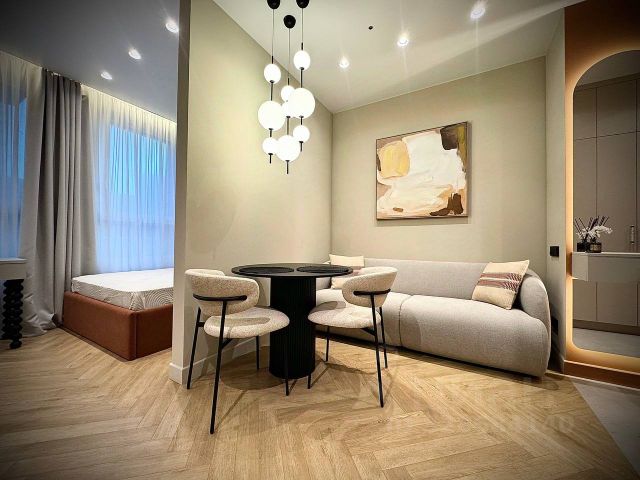 Здравствуйте! Предлагаем вашему вниманию стильную студию в аренду, расположенную в современном доме, построенном в 2021 году. Квартира находится на 4 этаже 20-этажного здания. Общая площадь студии составляет 25 кв. м, из которых 20 кв. м — жилая зона и 5 кв. м — кухня. Высокие потолки (3.1 метра) и окна, выходящие во двор, создают ощущение простора и уюта. В квартире выполнен дизайнерский ремонт, что придаёт особый шарм и стиль. Удобная и функциональная планировка студии позволяет рационально использовать пространство. В комнате и на кухне есть вся необходимая мебель. Из техники в вашем распоряжении: кондиционер, холодильник, посудомоечная и стиральная машины, а также телевизор. Ванная комната оборудована просторной душевой кабиной, что делает её использование комфортным. Дом оснащён подземной парковкой, поэтому можно не беспокоиться о месте для автомобиля. В здании работают один пассажирский и два грузовых лифта, что удобно для жильцов. Также предусмотрен пандус для удобного доступа. Дом находится в хорошем состоянии, так как был построен совсем недавно. Рядом с домом вы найдёте всё необходимое для комфортной жизни: школы, детские сады, клиники и магазины. До станции метро Авиамоторная можно дойти пешком за 14 минут, что делает транспортную доступность довольно удобной. выезд на 3-кольцо в 5 минутах. прямой выезд на ш. Энтузиастов в сторону центра. Условия аренды: договор аренды, залог по договорённости. Квартира подходит для проживания одного-двух человек без домашних животных. Приглашаем вас записаться на просмотр, чтобы оценить все преимущества этой уютной студии. Не упустите возможность арендовать современное жильё в новом доме. Ждём вашего звонка! Сдаю квартиру-студию на проезде Невельского в Москве.