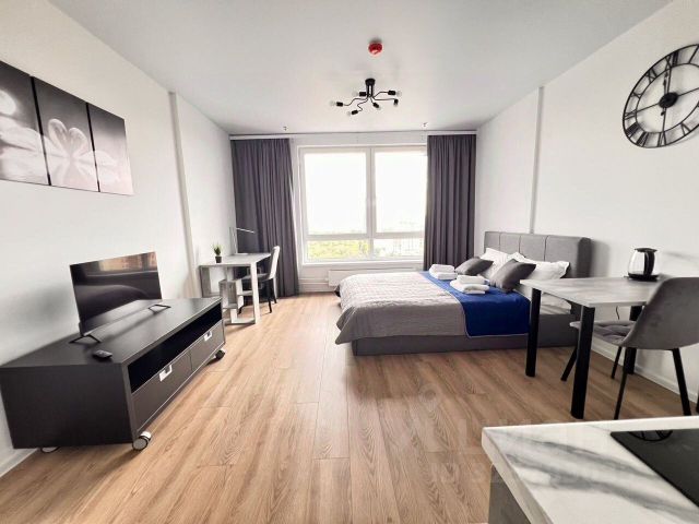 Видовая студия, 26,2 м² в ЖК Волоколамское 24. С РИЭЛТОРАМИ НЕ РАБОТАЮ. НАПРЯМУЮ ОТ СОБСТВЕННИКА! Просторная современная студия с дизайнерским ремонтом, качественной мебелью и техникой. Есть вся техника для комфортного проживания: Посудомоечная и стиральная машины, встроенная духовка, кондиционер, телевизор со смарт-тв. Установлена приточная вентиляция с подогревом воздуха. Комфортная двуспальная кровать с подъемным механизмом и ортопедическим матрасом, шторы блэкаут, зонированное освещение. Оплата: первый месяц + депозит, вода и свет по счетчикам, интернет отдельно.