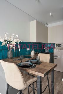 В кухонной зоне установлена варочная панель, чайник, микроволновка, духовой шкаф, фильтр для воды, посудомоечная машина, холодильник, а также имеется необходимая для приготовления и приёма пищи посуда.