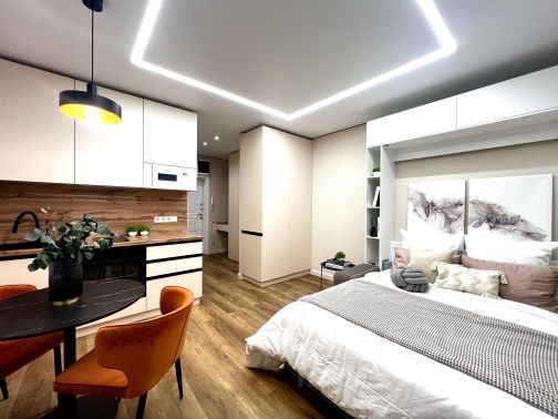 Сдается впервые! Звоните! Успейте! Вашему вниманию предлагается стильная и светлая студия в современном ЖК комфорт-класса "Городские истории" Продуманное до мелочей пространство с идеальными зонами для хранения - Дизайнерский ремонт с зонированным освещением и спокойной цветовой гаммой -Пространство грамотно организовано Комфорт и функциональность: - В центре студии располагается уютный раскладной диван (превращается в двуспальную кровать) и мягкое кресло - Обеденная зона с круглым столом и стульями. Полностью оборудованная кухня с посудомоечной машиной, варочной панелью, вытяжкой и большим холодильником - В прихожей вместительный шкаф для хранения - Санузел оснащен душевой кабиной, стиральной машиной и зеркалом с подсветкой. Есть кондиционер - Окна выходят на тихую сторону Рядом с домом Вы найдете всё необходимое для комфортного проживания: благоустроенная территория с детскими площадками и зонами отдыха. Неподалеку для прогулок живописный парк "Рассказовка" Удобное расположение: Легкая транспортная доступность станции "Рассказовка" всего 3 минуты пешком до метро и всего 30 минут до Москва-Сити. Аэропорт Внуково в двух станциях езды. Быстрый выезд для автомобилей на Боровское и Киевское шоссе, позволяет Вам добраться до нужной точки города как на машине, так и транспортом Подробнее о ЖК: Яркая архитектура и четкие геометричные линии жилых корпусов придают жк "Городские Истории" запоминающийся облик. Квартал состоит из трех очередей жилых корпусов переменной этажности. Светлая входная группа, дом оборудован одним грузовым и двумя пассажирскими лифтами. Также на территории ЖК разместятся собственный детский сад и торгово-развлекательный центр с современным кинотеатром, популярными магазинами, просторным фуд-кортом и детской игровой зоной. Полностью готова к заселению! Приглашаем Вас на просмотр! Сдаю квартиру-студию в поселении Внуковское в Москве.