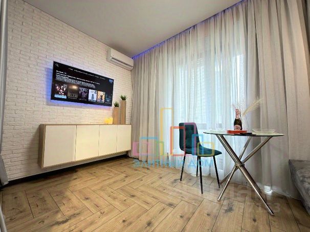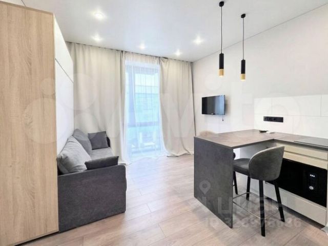 Квартира студия в ЖК Бизнес-класса. Современный ремонт. Полный комплект техники (посудомоечная машина, стиральная машина с сушкой, микроволновая печь, телевизор, кондиционер). Безопасная территория (закрытый двор, охрана, консьерж). Рядом торговый центр и современная школа. Оснащение квартиры: Теплый пол в ванной Бойлер (независимость от отключения воды). Посудомоечная машина. Стиральная машина с функцией сушки. Кровать с ортопедическим матрасом