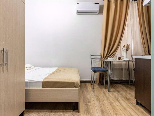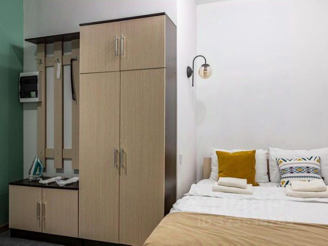 - Студия очень светлая: мансардные окна над кроватью с видом на Московское небо и архитектуру города