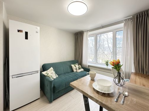 • Просторная однокомнатная квартира-студия с удобным раскладным диваном.