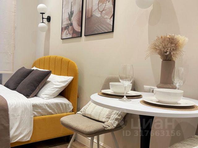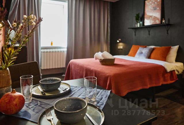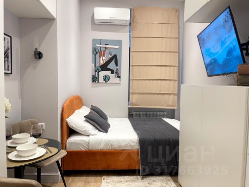 - Студия очень светлая: мансардные окна над кроватью с видом на Московское небо и архитектуру города