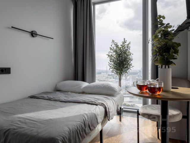 Светлые оттенки в минималистичном стиле создают атмосферу легкости и воздушности, подчеркивая каждую деталь интерьера. Просторная зона отдыха приглашает к расслаблению, с тремя спальными местами: двуспальной кроватью, обрамленной мягкими подушками, и уютным креслом-кроватью, в котором хочется уютно устроиться с книгой.