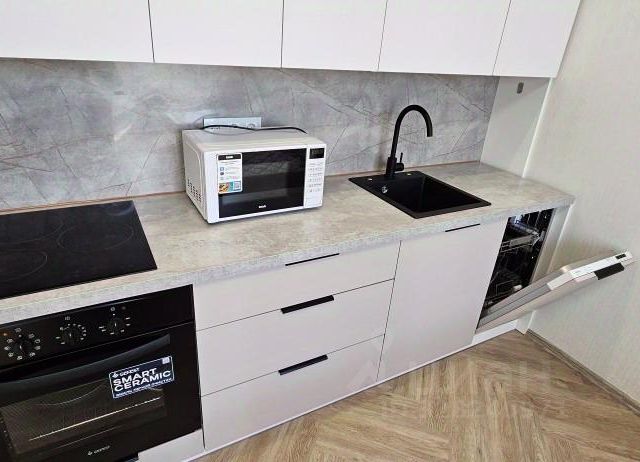 Кухня: Полностью оборудована (холодильник, плита с духовкой, микроволновка, электрический чайник, миксер, посуда). Для ценителей: френч-пресс и гейзерная кофеварка.