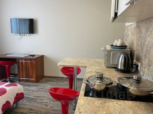 Студия полностью оборудована для комфортного проживания: телевизор, бесплатный Wi-Fi, стиральная машина, утюг, фен, варочная панель, чайник и микроволновка. Есть штопор и бокалы. Регулярная уборка профессиональной химией и дезинфекция от насекомых, а также смена белья на чистое и свежее проводятся перед каждым заездом.