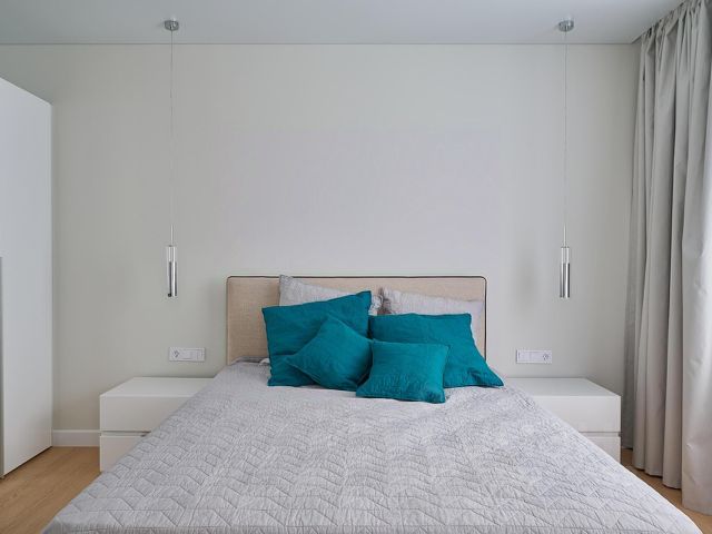 В спальне большая зона для гардероба, туалетный или рабочий столик, большая кровать с подьемным механизмом, матрас "Орматек", на потолке вентилятор.