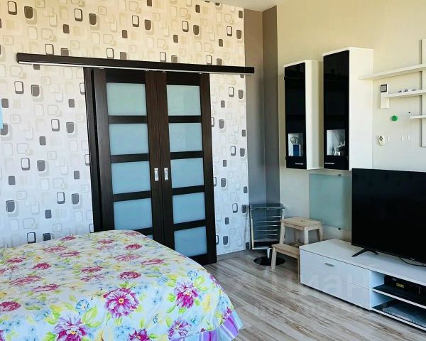 ОПИСАНИЕ: Общая площадь 40 метров, комната 19 метров, большая гардеробная с зеркальными дверьми, кухня, лоджия. Диван раскладывается.