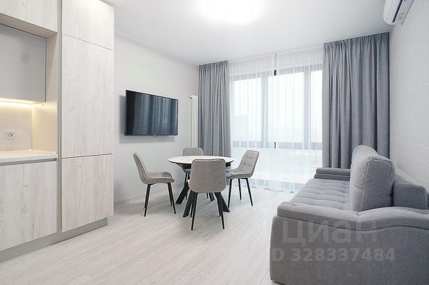 В квартире сделан качественный ремонт и звукоизоляция, стены и мебель в светлых тонах, интерьер выглядит современно.