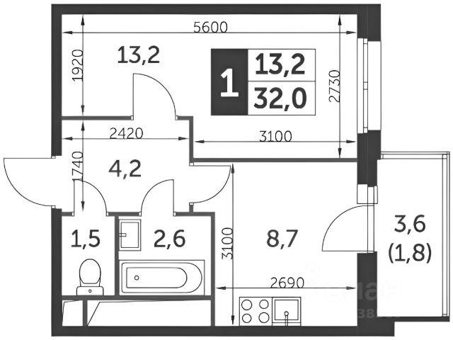 • ✅ Минимальная площадь: 19 м²