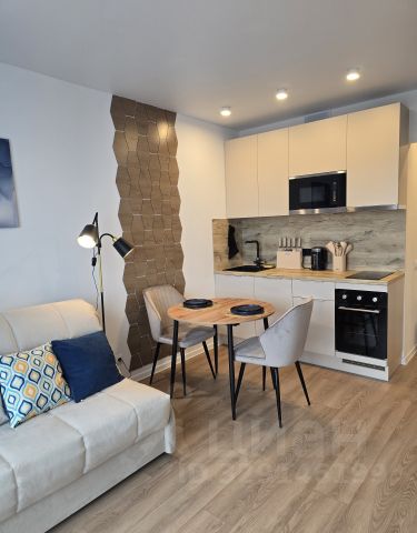 Квартира оборудована кухонным гарнитуром, мебелью и бытовой техникой. Есть кондиционер, холодильник, стиральная машина, встроенная варочная панель, вытяжка, микроволновая печь, электрочайник, диван "книжка" с параметрами спального места 120 см х 185 см. Окно выходит в красивый, оборудованный двор с эко зоной отдыха.