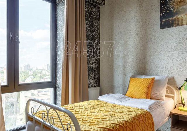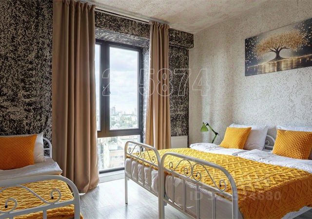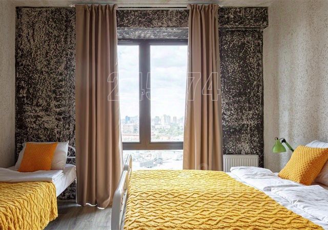 Комфортная кровать с ортопедическим матрасом, раскладной диван, продуманная система хранения с возможностью подстроить под себя, рабочее место, комфортная качественная кухня, в ванной комнате ванная, тёплые полы, красивый вид из окна.