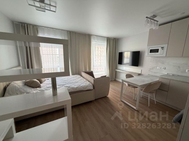 Сдаётся светлая квартира-студия с евроремонтом в ЖК Академика Павлова. Без депозита! Её можно посмотреть когда Вам удобно: бронируете время, забираете ключи и спокойно осматриваете. Если всё понравится, договор подпишем онлайн и будем поддерживать Вас на всех этапах аренды. В квартире есть: - Кухонный гарнитур; - Холодильник; - Стиральная машина; - Варочная панель; - Духовой шкаф; - Посудомоечная машина; - Кондиционер; - Микроволновка; - Телевизор; - Интернет проведён, есть Wi-Fi. Полы — ламинат и плитка. Окна выходят во двор, на запад. Собственник готов заселить не более 2 взрослых жильцов, докупить необходимую мебель/технику или заключить договор с юридическим лицом. С домашним питомцем нельзя. Дом находится под охраной, комплекс расположен в тихом районе, в пешей доступности находятся: остановки общественного транспорта, продуктовые магазины, аптеки, кафе, центральная больница, фитнес-клуб, ТРЦ Кунцево Плаза. Рядом — парк Крылатские Холмы. До м. Молодёжная — 8 минут пешком. Снять квартиру-студию с мебелью в районе Кунцево в Москве.