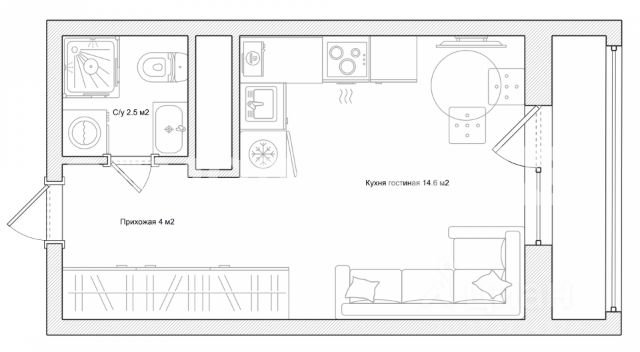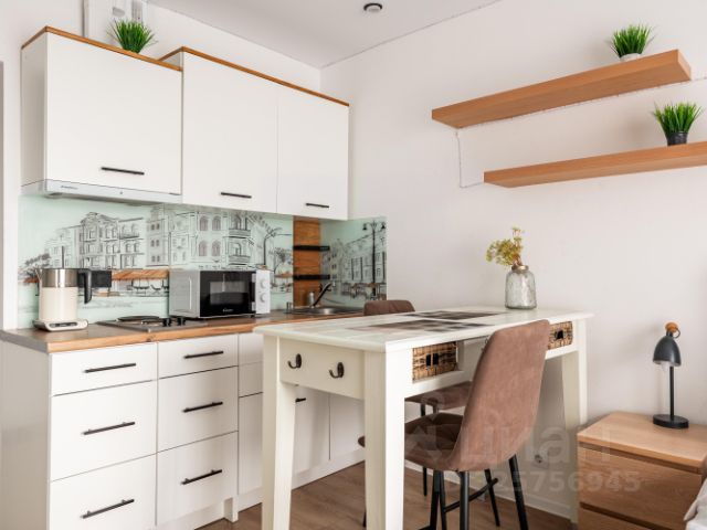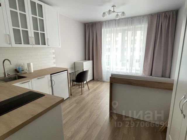 Студия просторная - общая площадь 33 м2, кухня-гостиная 25 м2, вид из окна на рощу, просторный совмещенный санузел, большая прихожая с вместительным зеркальным шкафом.