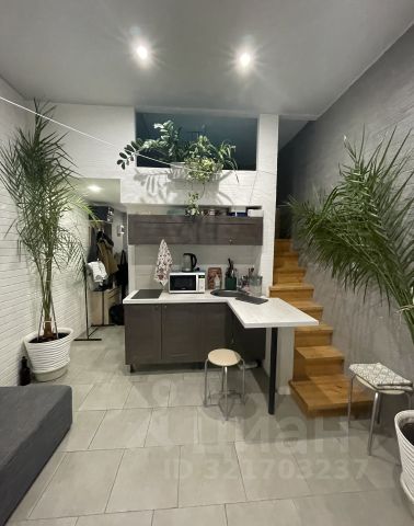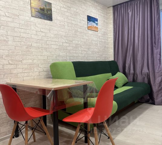 Апартаменты (студия) на длительный срок с собственным санузлом (душевая кабина, раковина, унитаз); полностью меблирована: полутороспальная спальная кровать (матрас 20 см), стол, стулья, шкаф, зеркало, полки, шторы, холодильник, рядом в коридоре - общая кухня с современными плитами и мойками, есть стиральная машина.