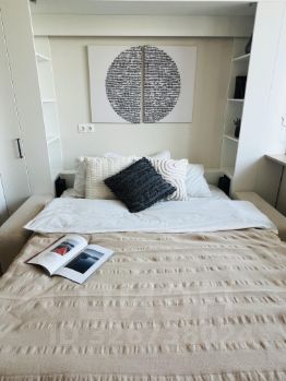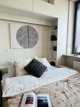 Доступно заселение на следующий рабочий день после обращения! Предлагается в аренду студия 3251 с высокими потолками и приятным видом на обустроенный внутренний двор площадью 33 м2, расположенная на двенадцатом этаже нового арендного дома Матч Поинт. Современный эргономичный дизайн, вся необходимая мебель техника, разработанная с использованием умных технологий. Из встроенной техники (техника фирмы Hotpoint): 2-х камерный холодильник, варочная 4-х комфорочная панель, духовой шкаф, посудомоечная машина и вытяжка. Мебель европейского производства: при входе в апартаменты расположен вместительный шкаф (фирма Permo, Италия), пуф, массив которого выполнен из бука и хвойных пород, материал обивки - ткань "гусиная лапка", панель вешалка; зона кухни оборудована комплектом кухонной мебели с белыми деревянными фасадами, стильной барной стойкой и барными стульями на две персоны. Для Вашего комфортного сна в зоне комнаты расположен двуспальный раскладной диван (190 см *150 см, механизм "еврокнижка", тканевая обивка Casain piain), на окнах помимо тюли есть портьеры Design&Colors, SOLKLIMA DESEN, установлен кондиционер. А для тех, кто предпочитает быть в курсе событий - предусмотрен современный плазменный TV от Panasonic в комплекте с TV тумбой. Совмещенный санузел оборудован душевой кабиной и раковиной, вместительной и удобной в использовании стиральной машиной, большим зеркалом с подсветкой. Разрешено проживание с животными! Территория "Матч Поинт" закрытая, установлено видеонаблюдение и действует система электронных пропусков. В доме отапливаемая подземная парковка. Район с развитой инфраструктурой - вблизи множество парков, больниц, фитнес-центров, вузов и супермаркетов. Не менее развита транспортная сеть. Арендный дом расположен на Кутузовском проспекте: 10 минут пешком до станции метро "Багратионовская", в 5 минутах на автомобиле до Москва-Сити. Поблизости ТРЦ "Афимолл", "Филион", "Времена Года". Большой выбор парков для прогулок: Парк Победы, Филевский парк, Природно-исторический парк Москворецкий. Услуги 24/7 ВКЛЮЧЕНЫ В АРЕНДНУЮ ПЛАТУ! (прием корреспонденции, заявок на ремонт, выдача гостевых пропусков и т.д.). Удобный и доступный сервис дополнительных услуг: уборка, стирка, глажка, а также присмотр за животными и др. При заселении оплачивается стоимость аренды за первый месяц. При заключении договора аренды до 28 февраля доступна рассрочка оплаты депозита на 3 месяца! Дополнительно оплачиваются только счетчики коммунальных услуг. Аренда от ДОМ.РФ - это не просто квадратные метры. ДОМ.РФ создает единые стандарты качества арендного жилья. Мы обеспечиваем надежность и прозрачность регулирования договорных отношений с собственником арендуемого жилья, комфорт и безопасность проживания. Сотрудничество с нами это Ваши гарантия стабильности и уверенности в завтрашнем дне. Снять квартиру-студию с животными в Москве.