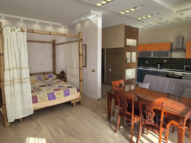 Студия - гостиная-кухня, совмещённый сан.узел, с ванной, большой шкаф в прихожей и шкаф в гостиной.