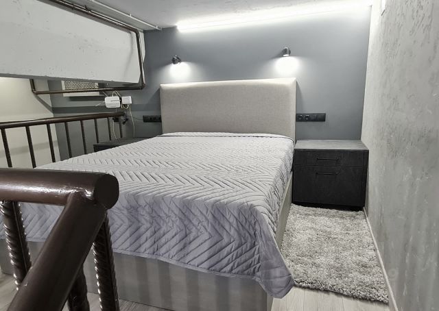 Квартира студия с дизайнерским ремонтом в стиле ЛОФТ в престижном ЖК LofTec. Высокие потолки ( 4 м),позволили сделать спальное место на 2 этаже. Высота потолка на втором уровне 185 см, что позволяет стоять в полный рост. Кухня - гостиная полностью укомплектована современной техникой, включая измельчитель мусора, и фильтры для воды. Раскладывающийся диван с полноценным двухспальным местом . Смарт телевизор и уютный камин старинной кладки. Лофтек -Охраняемый комплекс аппартаментов. Вход по пропускам ( карточкам).