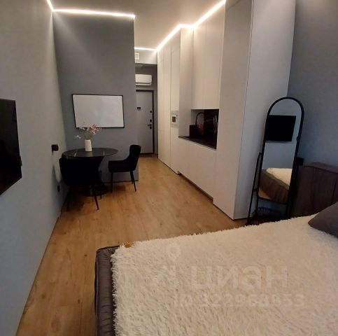 Квартира радует современным дизайнерским ремонтом. Студия полностью меблирована: есть все необходимое для комфортного проживания. В комнате вы найдете удобный диванчик с журнальным столиком, шкаф - лофт из экологически чистого дерева- сосна для хранения вещей, телевизор с 260 каналами Кион. Проведен высокоскоростной 500 мб интернет. Спальное место расположено на 2 уровне - это удобная высокая ниша с ортопедическим матрасом 27 см высотой, новым постельным бельем, евро пледом, имеется светильник- бра, 4 розетки для ноутбуков, зарядки телефонов, в углу расположена тумба с ночником и напольным вентилятором. На кухонной зоне имеется холодильник, микроволновая печь, мультиварка Медея, электрочайник, столовые приборы и посуда. В комнате имеются 2 ниши для хранения вещей. Санузел совмещенный, оборудован современной душевой кабиной с гигиеническим и тропическим душем, унитазом- инсталляцией и компактной стиральной машиной, электрическим полотенцесушителем и керамической раковиной. Имеется комплект полотенец, гигиенических и бытовых средств.
