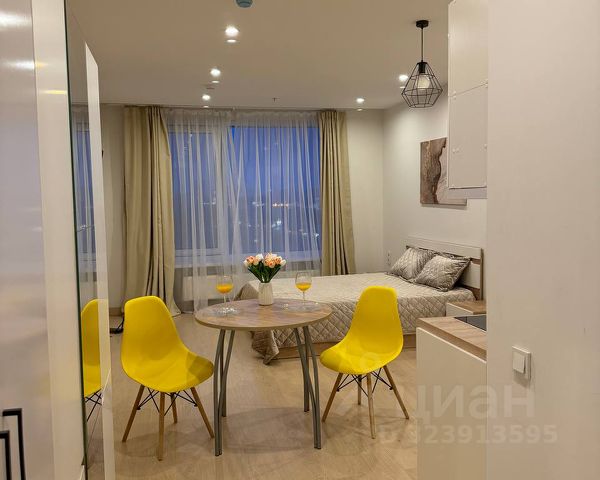 Сдается студия 23 кв м со дизайнерским ремонтом, полностью готова к проживанию. В студии есть необходимая мебель и бытовая техника. Из техники: холодильник, телевизор, стиральная машина и кондиционер. Совмещённый санузел оборудован душевой кабиной. Дом современный, с подземной парковкой, что удобно для автовладельцев. В здании четыре пассажирских и четыре грузовых лифта, поэтому можно не беспокоиться о доступности на этаж. Также в доме есть пандус и мусоропровод, что добавляет удобства. В пешей доступности от дома находятся школы, детские сады, клиники и магазины. Всё необходимое для жизни — рядом. Приглашаем вас на просмотр! Покажу в удобное для Вас время.