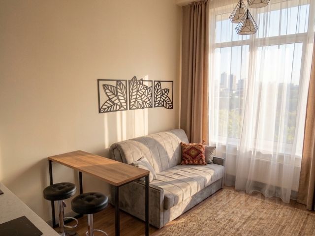 Квартира расположена на 15 м этаже современного 25-х этажного монолитного дома. Общая площадь 27 м2, с/у совмещенный.